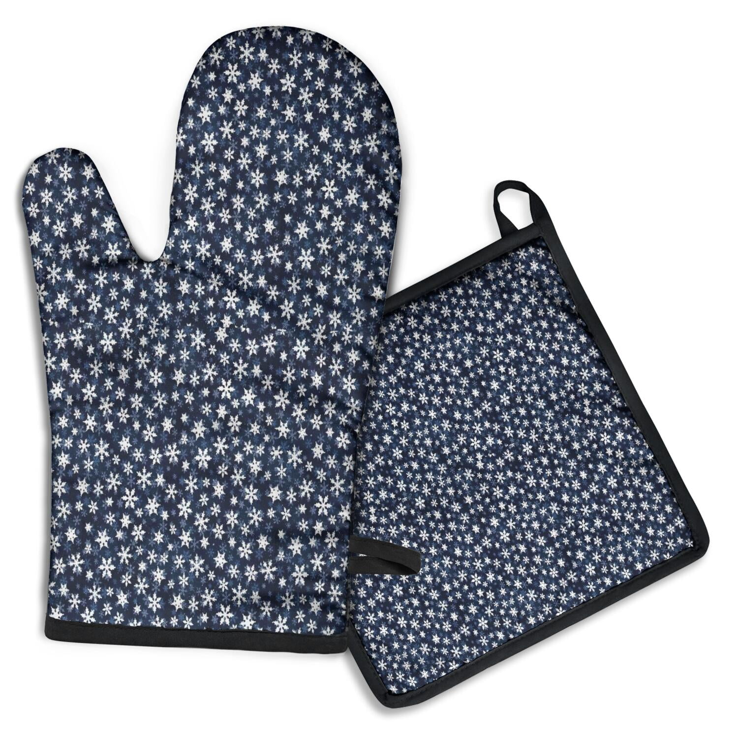 Dark Blue Christmas Snowflake Pattern Kitchen Oven Mitt and Pot Holder