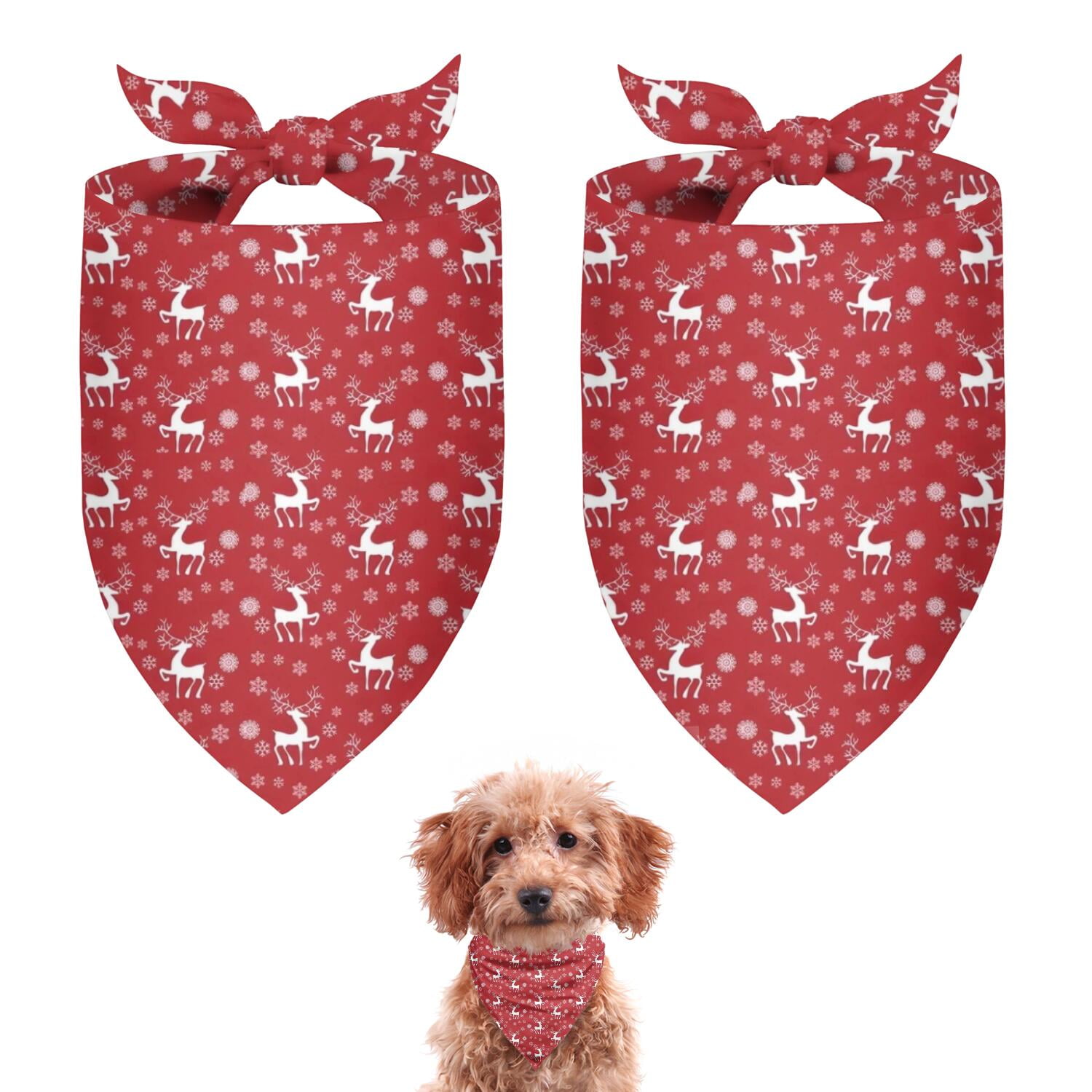 Dog Bandana 2 Pack Red Christmas Deer and Snowflake Pattern Bandanas