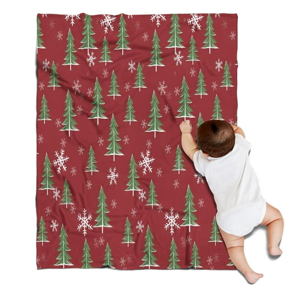 Red Christmas Tree and Snowflake Pattern Blanket Comfortable Soft