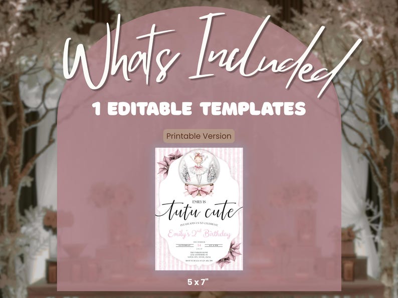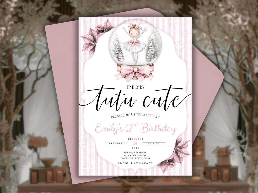 Ballerina Snow Globe Birthday Invitation Tutu Cute 2nd Birthday Party