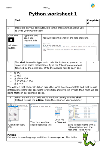Python Worksheets Computer Science Worksheets Library