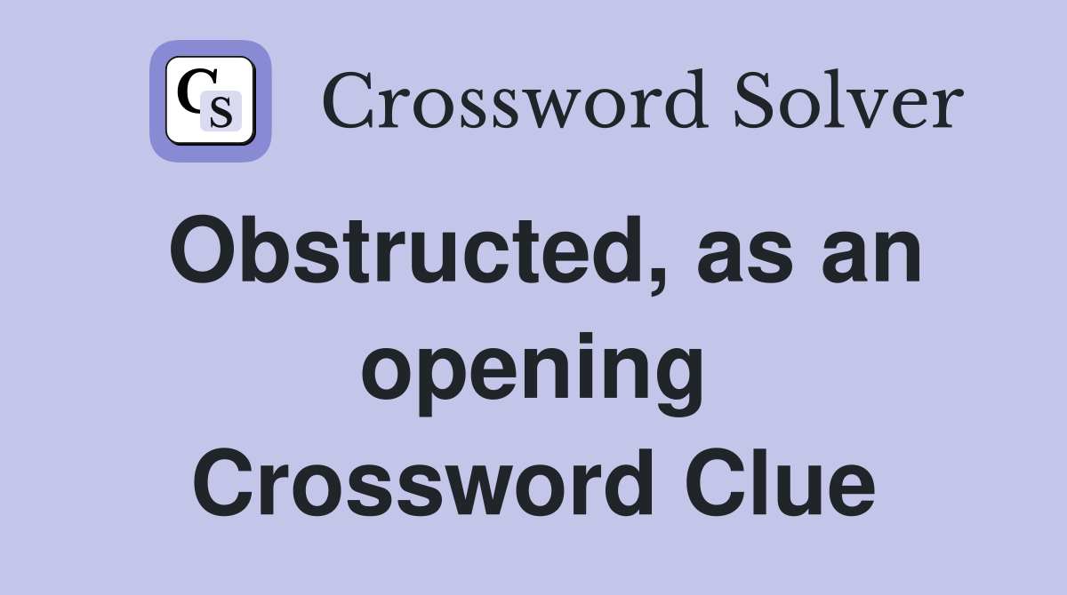 Obstructed as an opening Crossword Clue Answers Crossword Solver