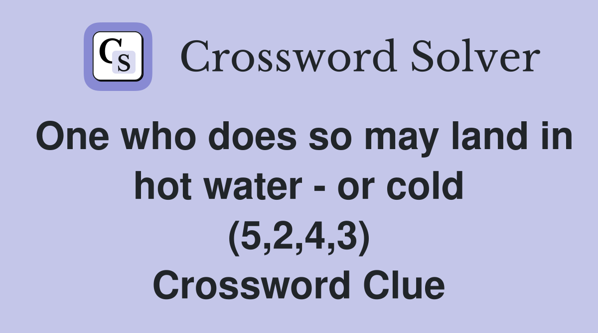 One who does so may land in hot water or cold (5 2 4 3) Crossword