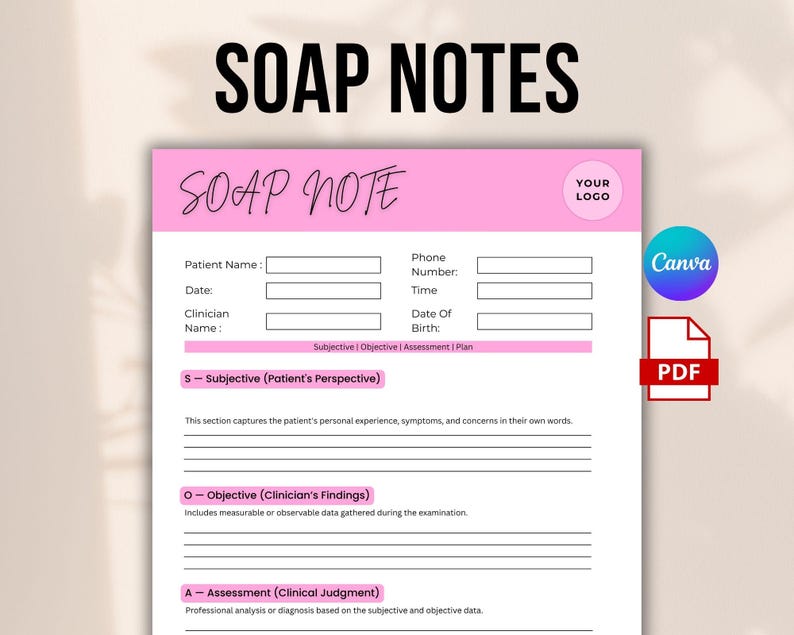 Editable SOAP Note Template Soap Notes Format Note Template for