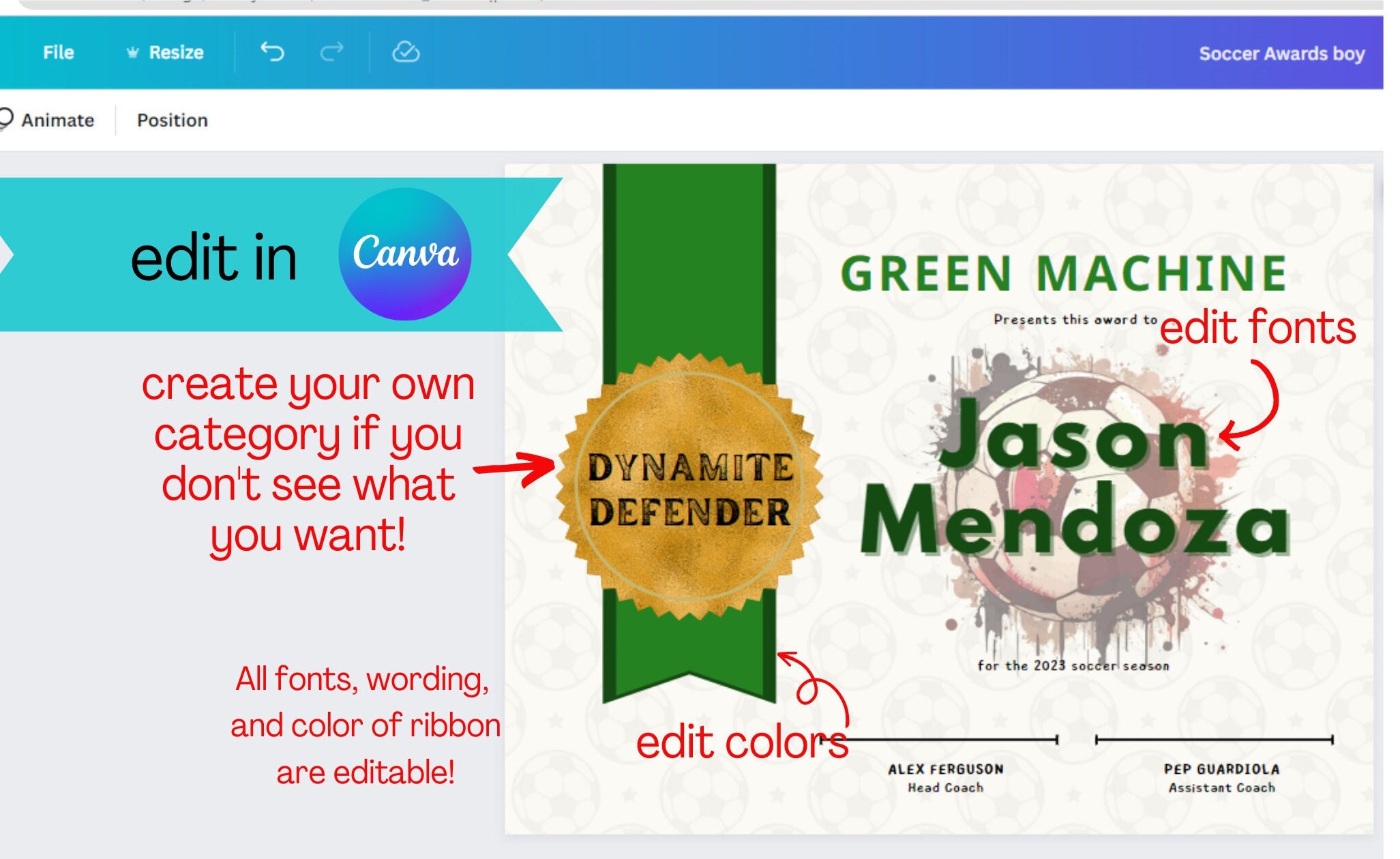 Editable Soccer Award Certificate Bundle Canva Template Etsy