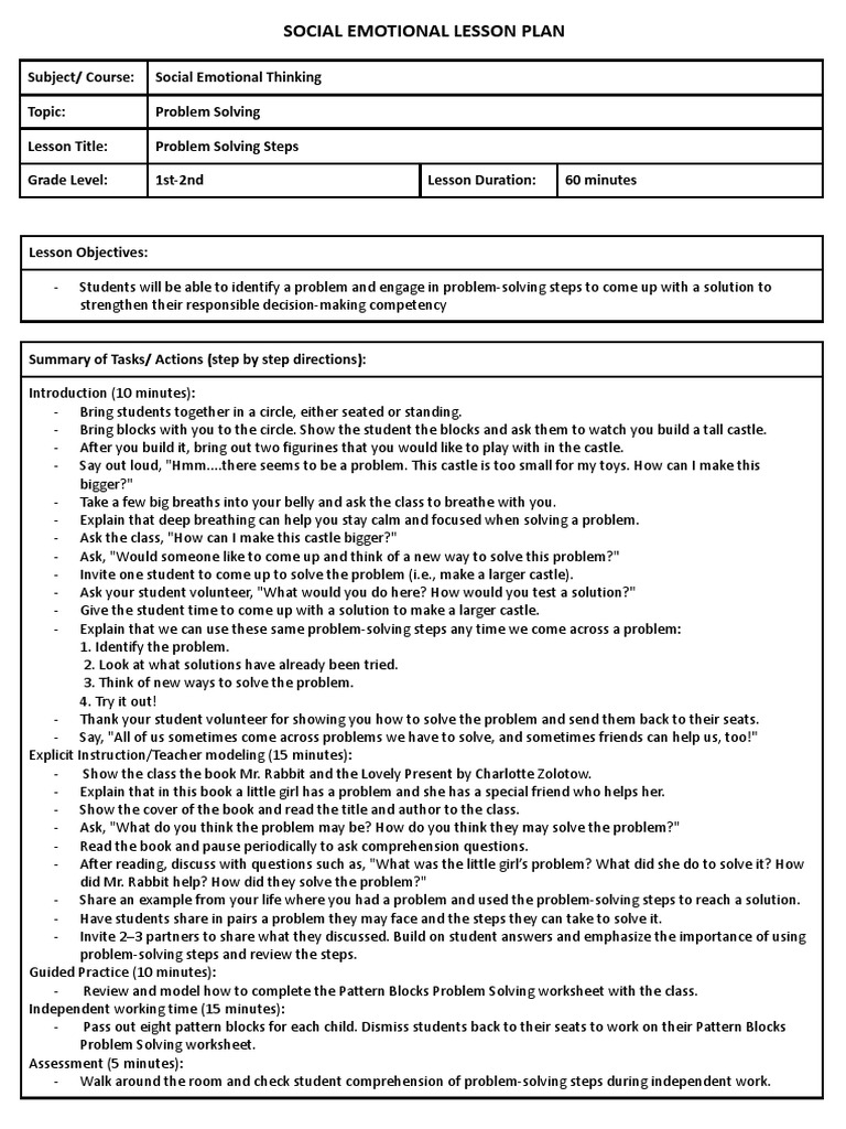 Sel Lesson Plan Template Educational Printable Activities