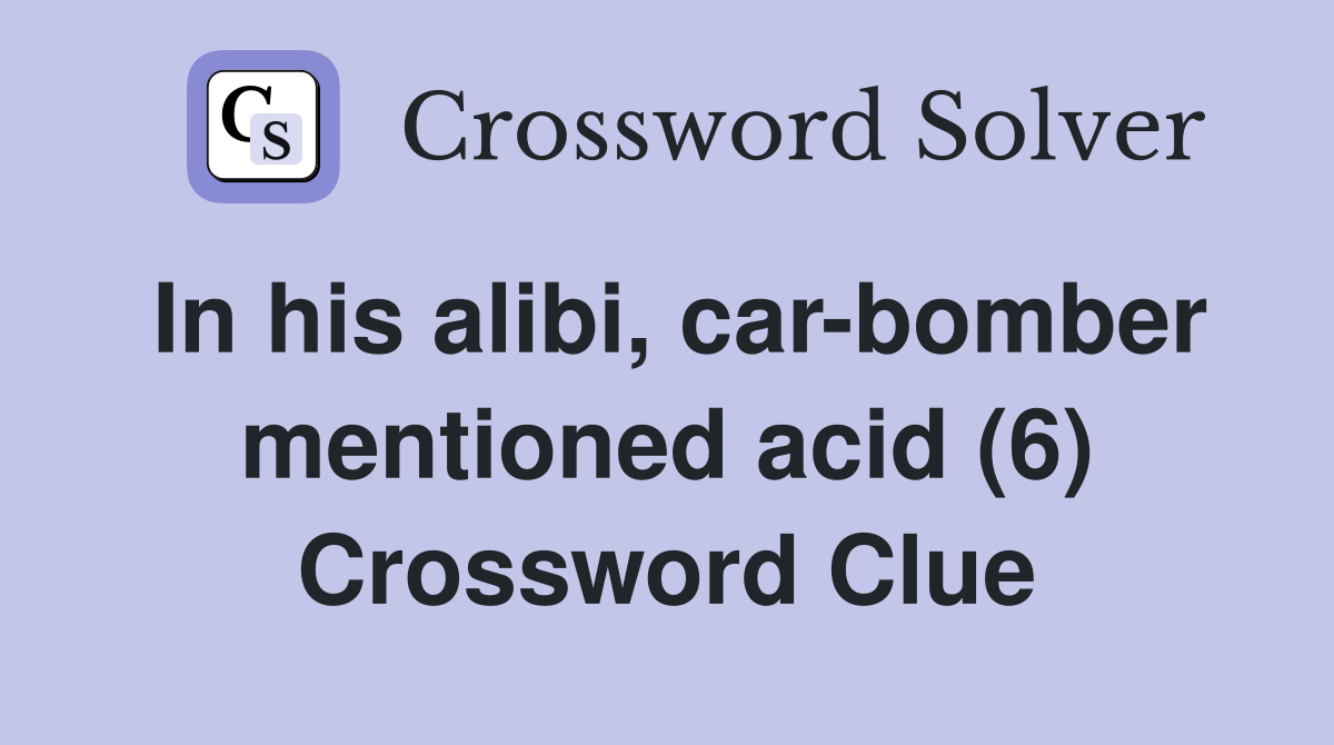 In his alibi car bomber mentioned acid (6) Crossword Clue Answers