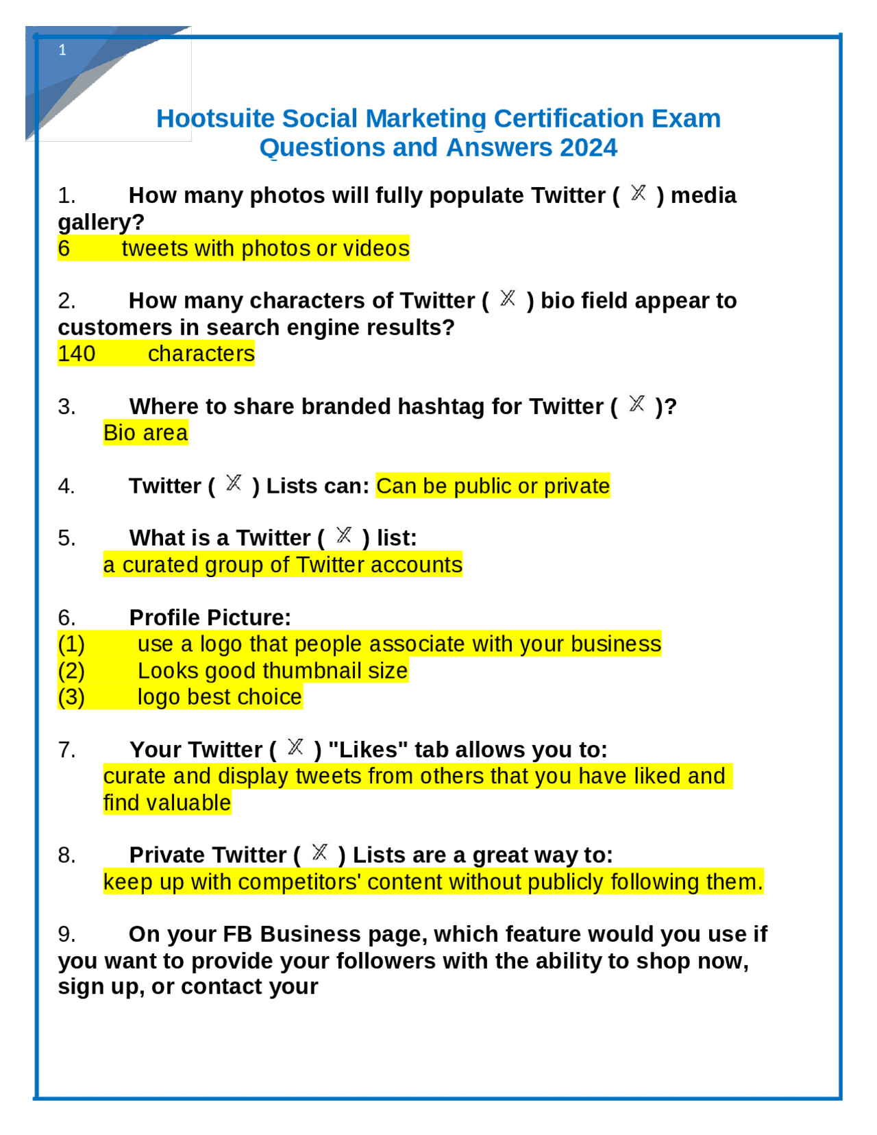 Hootsuite Social Marketing Certification Answers Guide · PartnerExam
