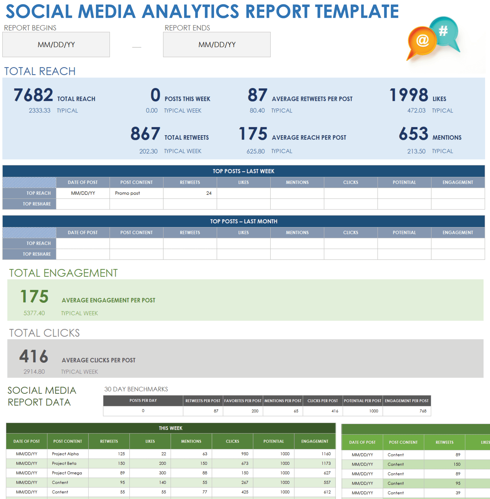 Social Media Reporting Template Excel