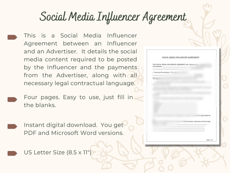 Editable Influencer Contract Template Brand Ambassador Agreement Form
