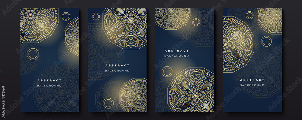 Dark blue and gold abstract luxury background Social media card