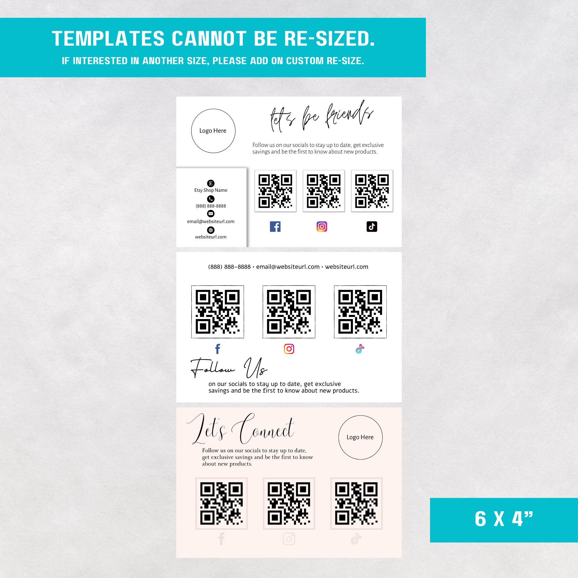 Social Media Card Template DIY Connect With Us Cards QR Code Etsy