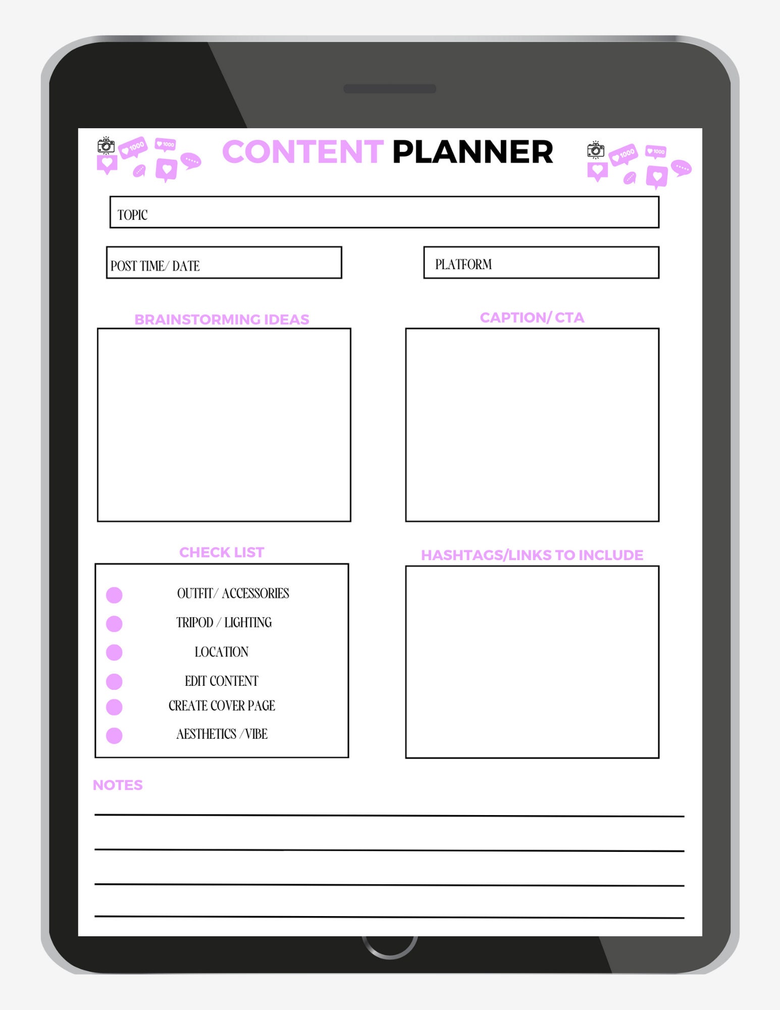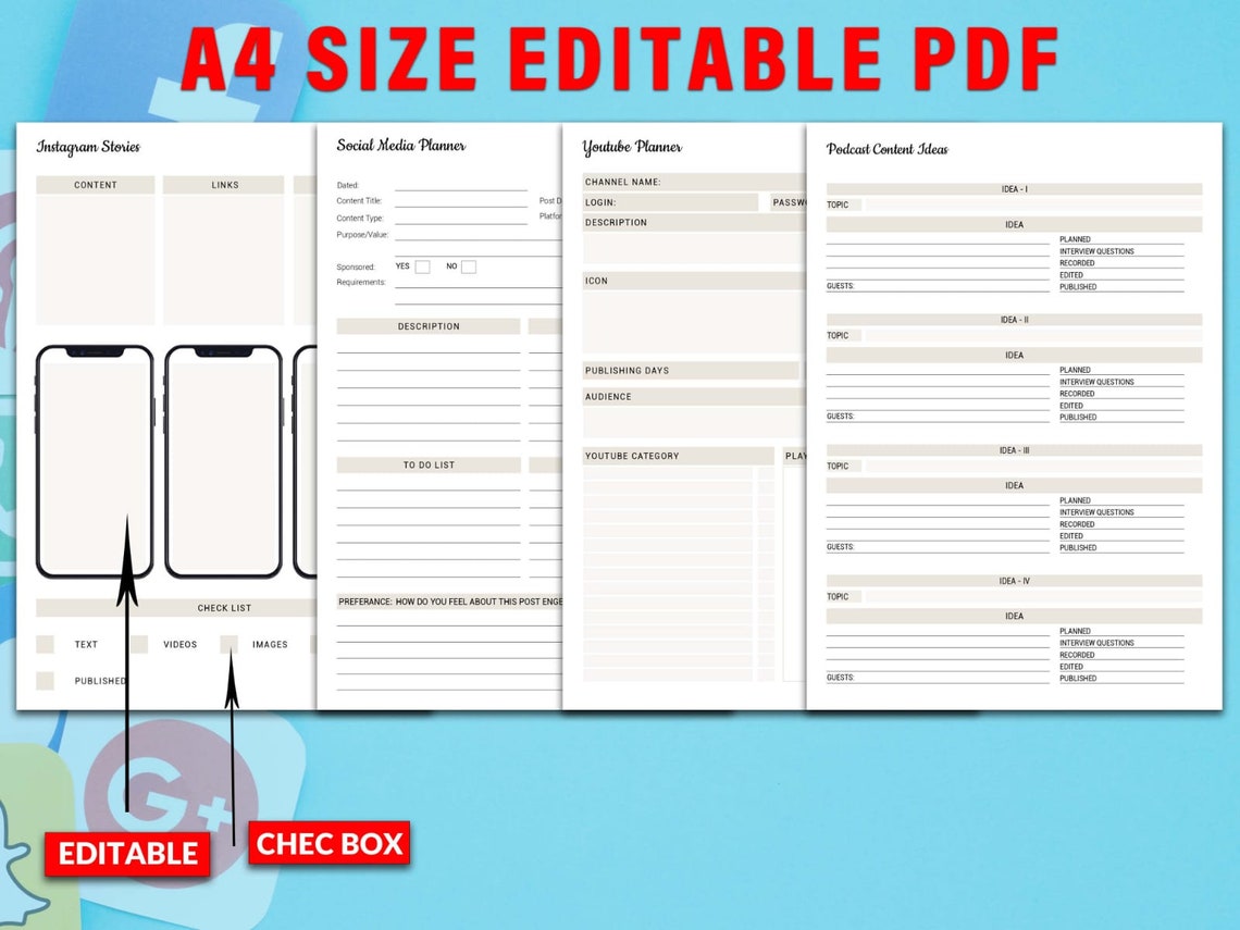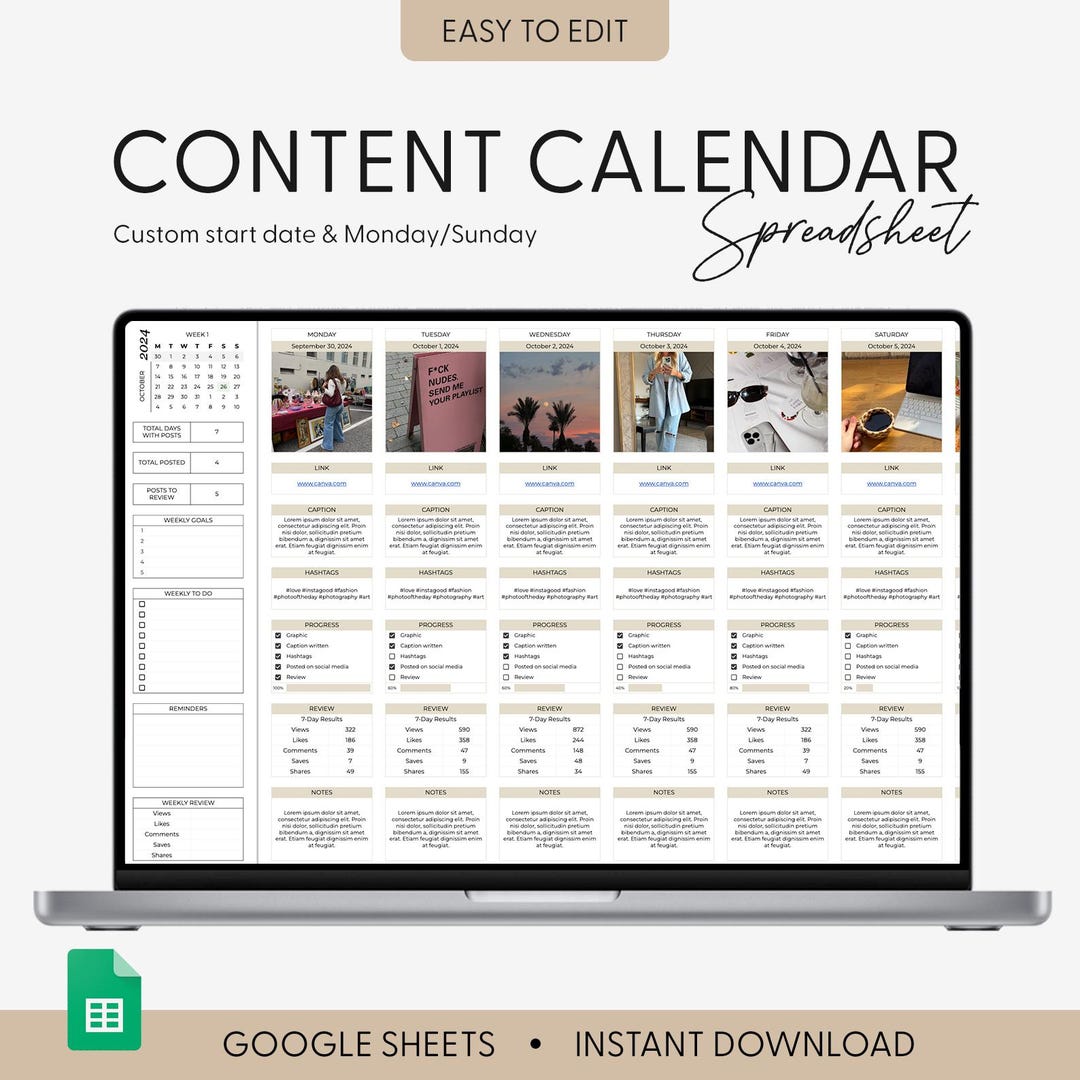 Social Media Content Calendar Planner Influencer Google Etsy