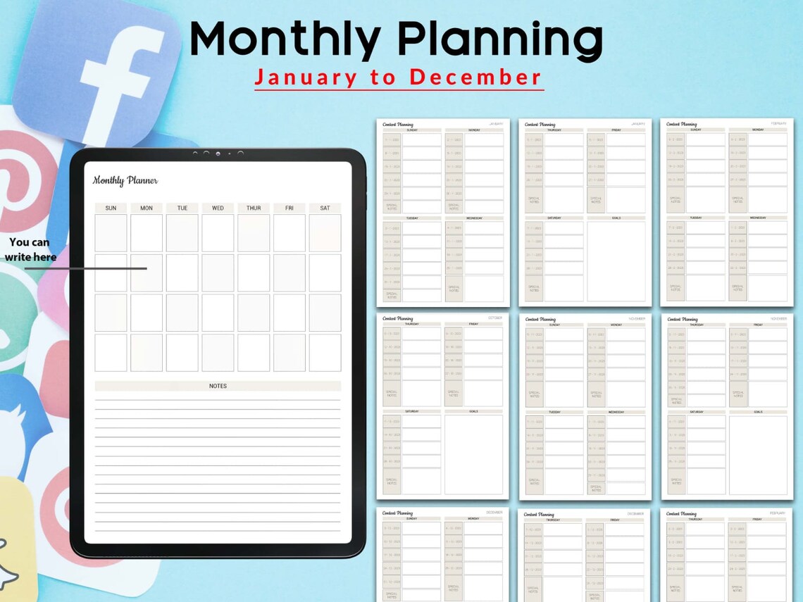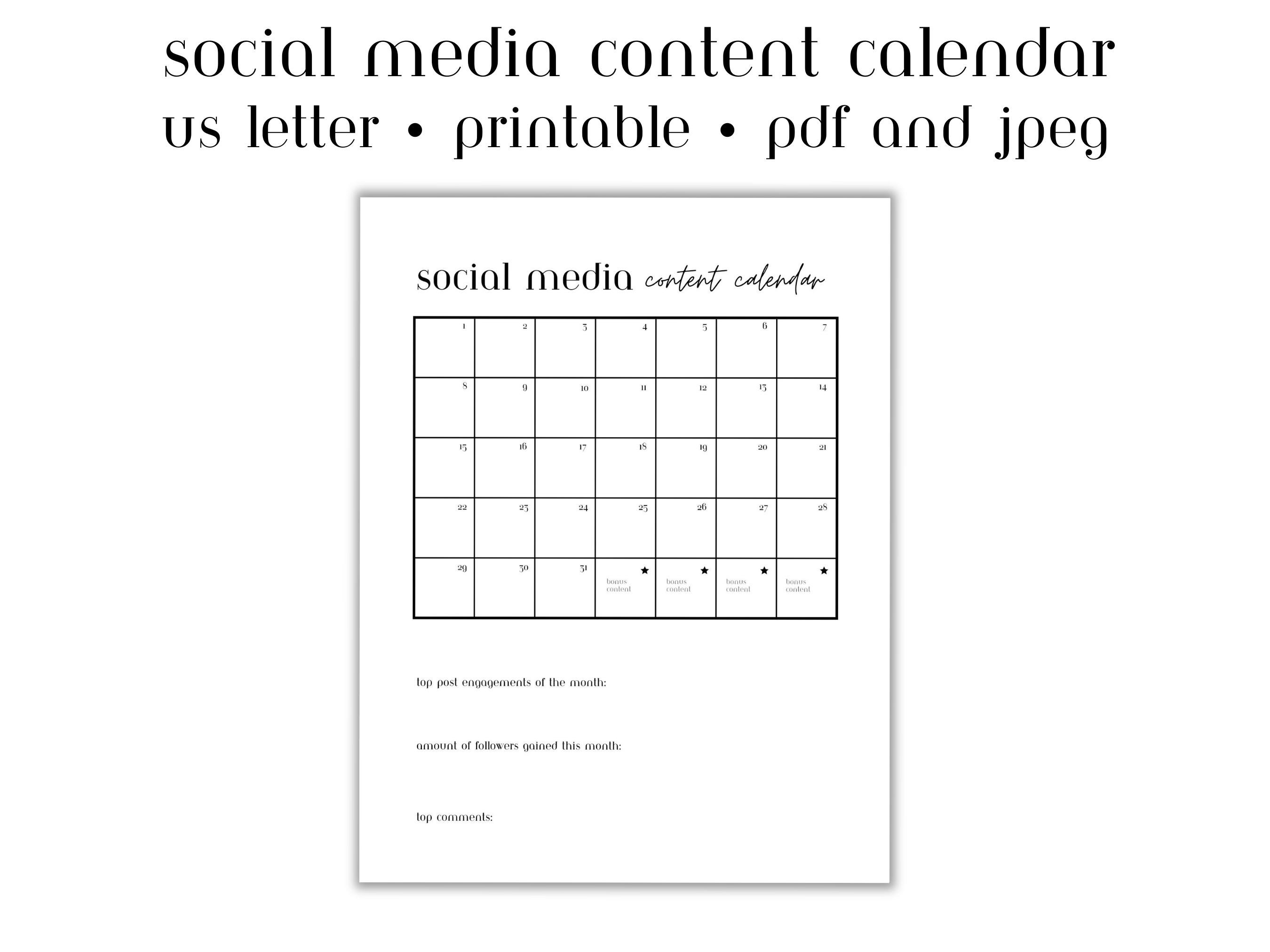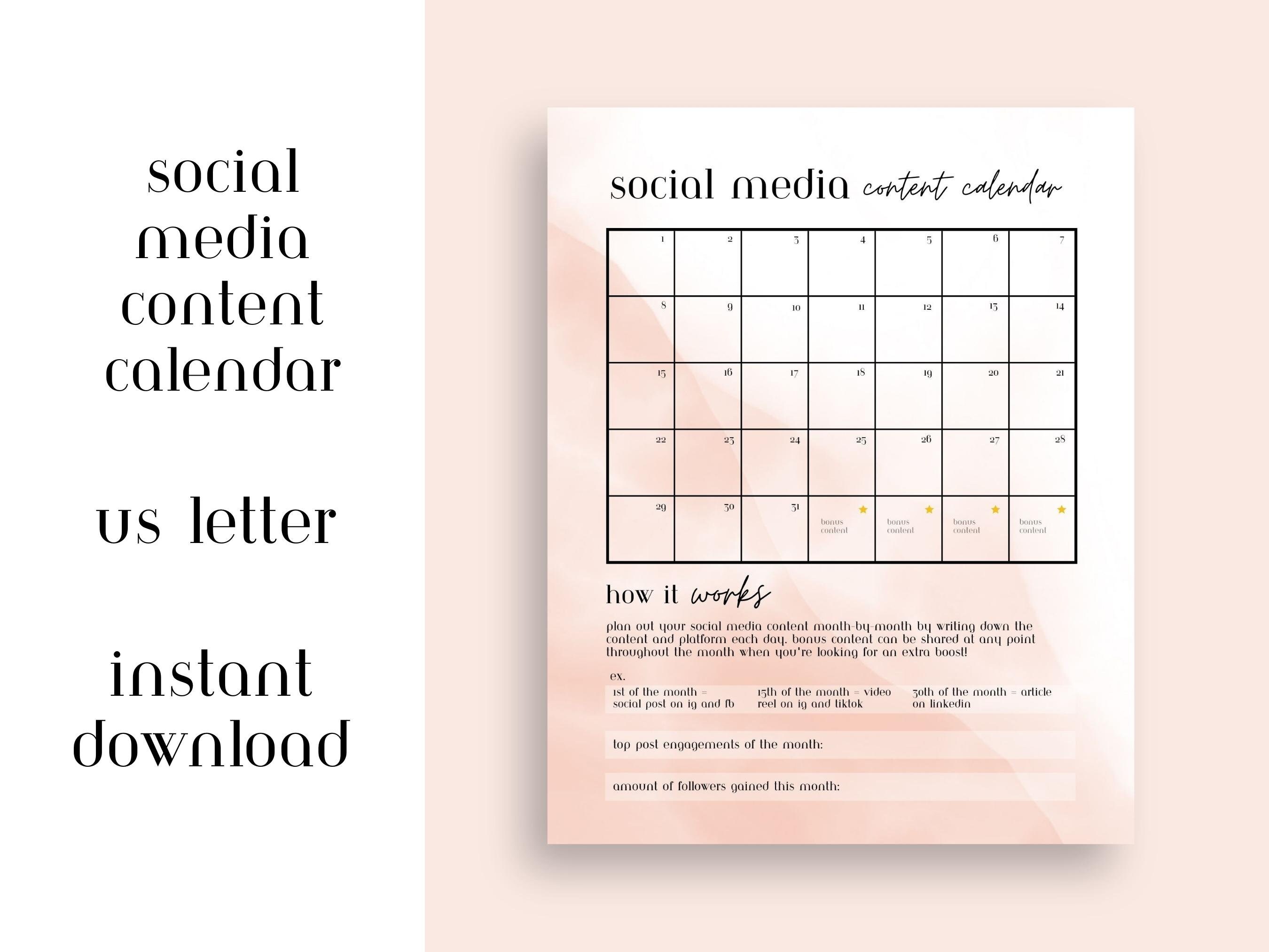Social Media Content Planner Calendar Digital/printable Calendar for