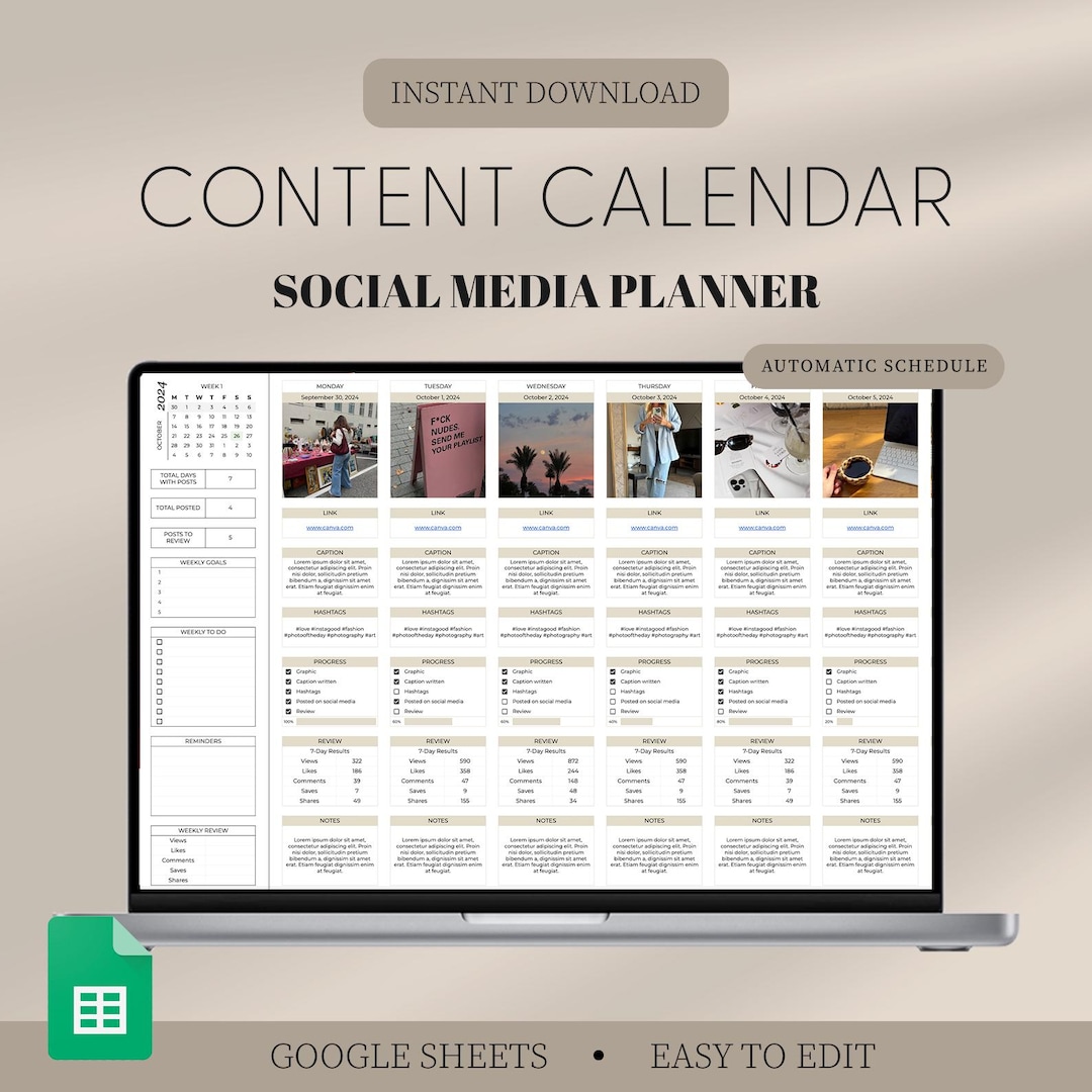 Social Media Content Calendar Planner Weekly Daily Instagram