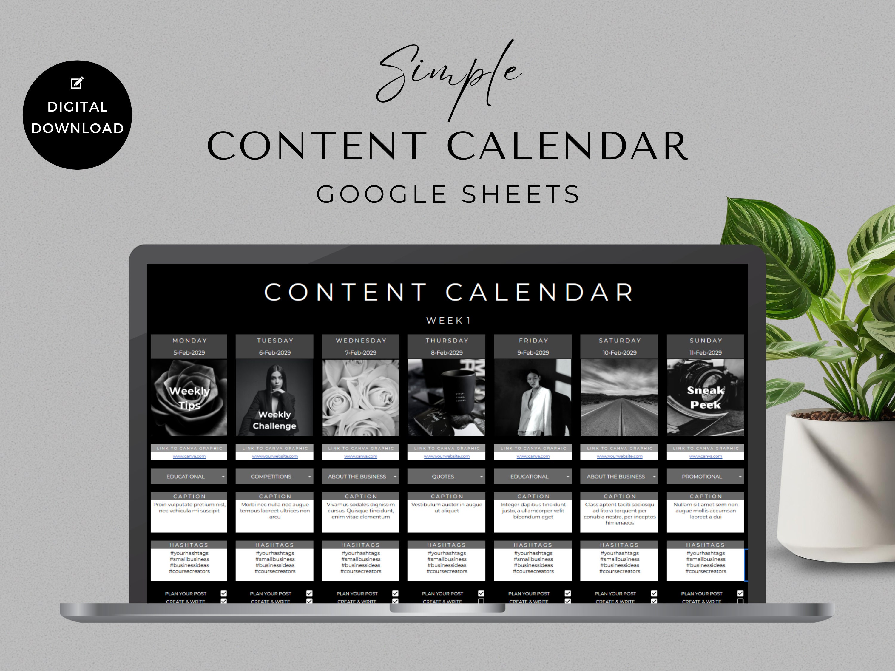 Social Media Content Planner Calendar Template With Etsy