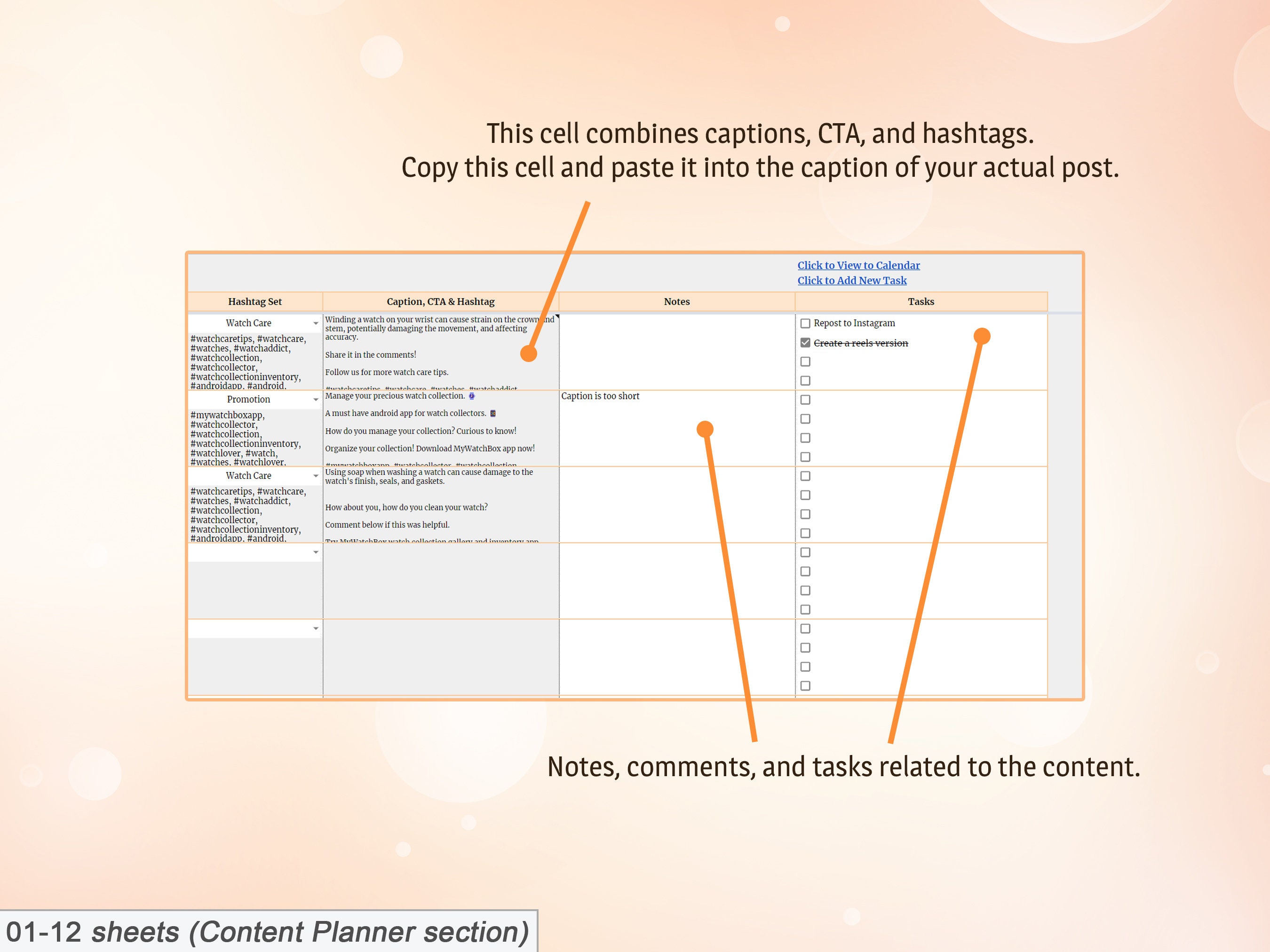 Social Media Content Planner Content Calendar Google Sheets Instagram