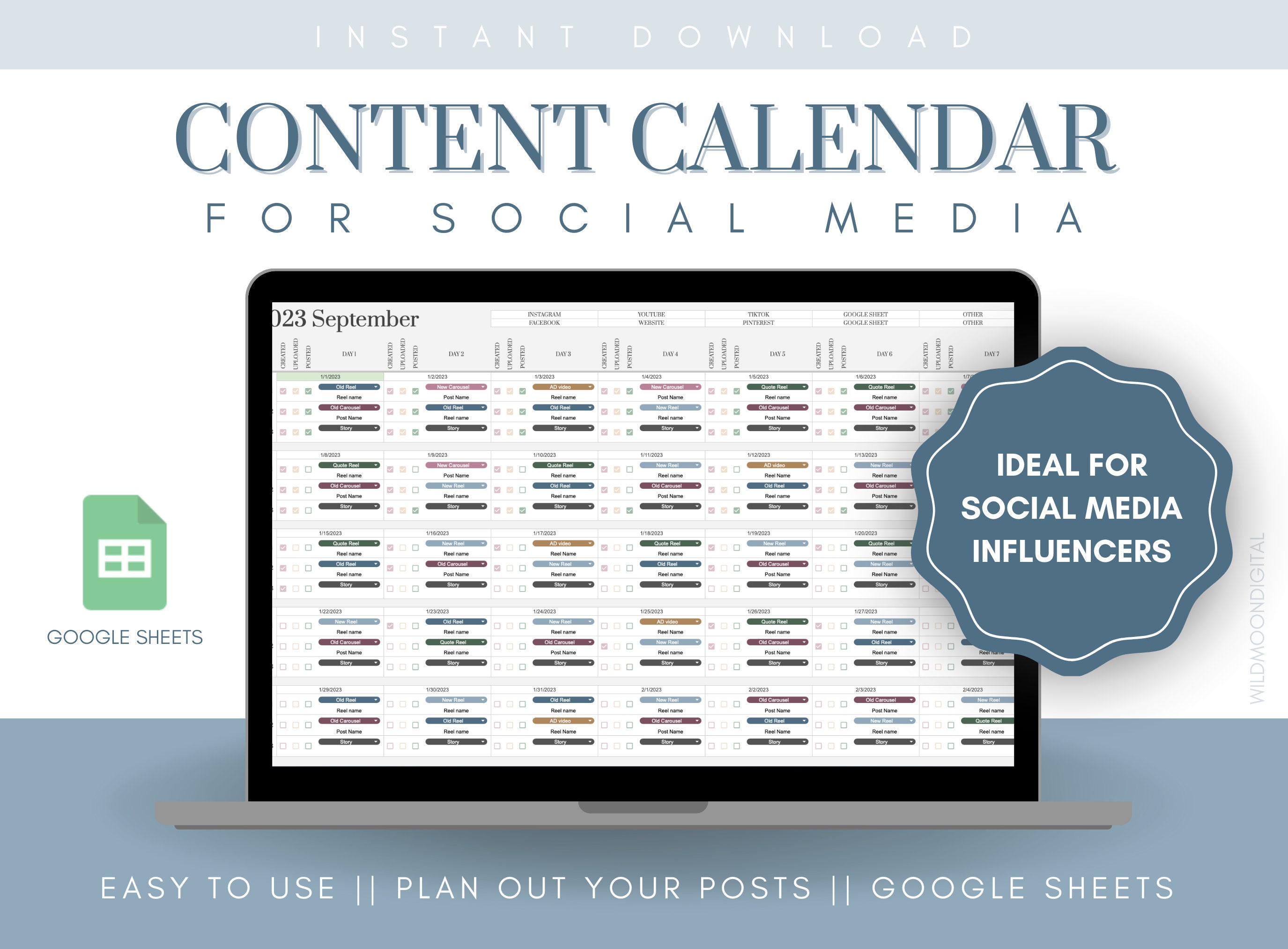 Social Media Content Calendar Planner Google Sheets Planner Social