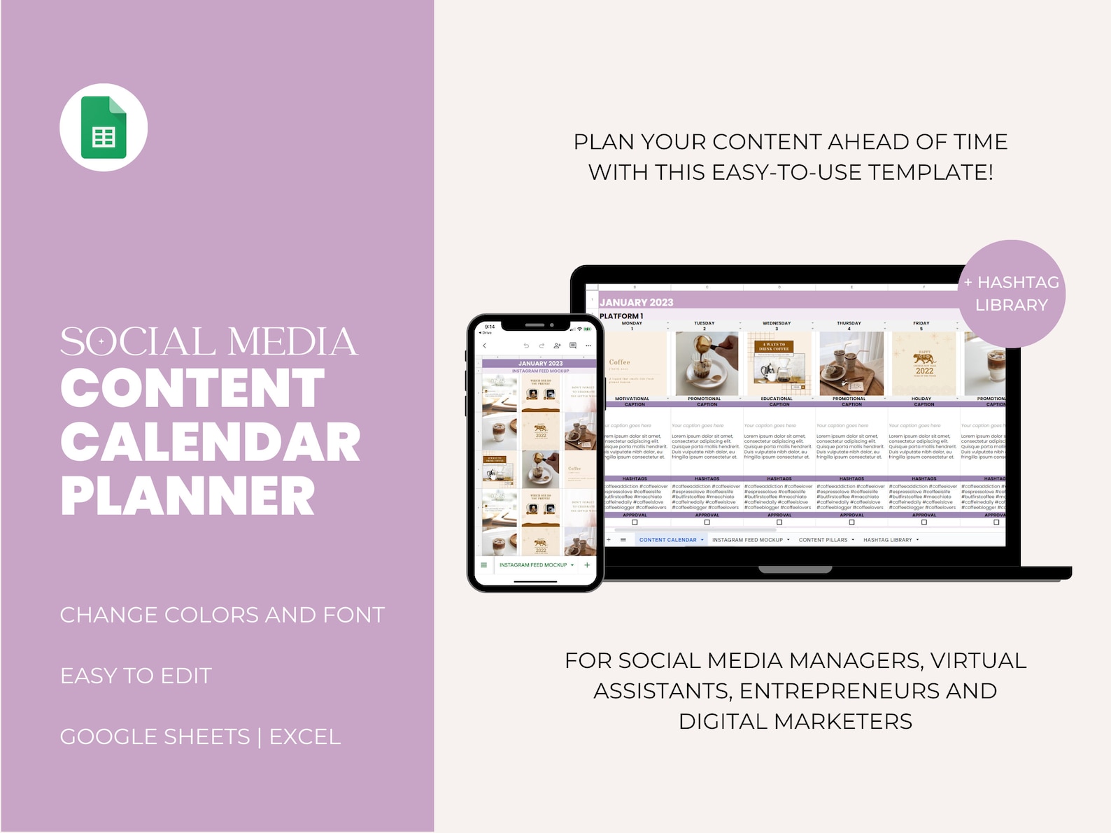 Social Media Content Calendar Planner Template Instagram Content Plan