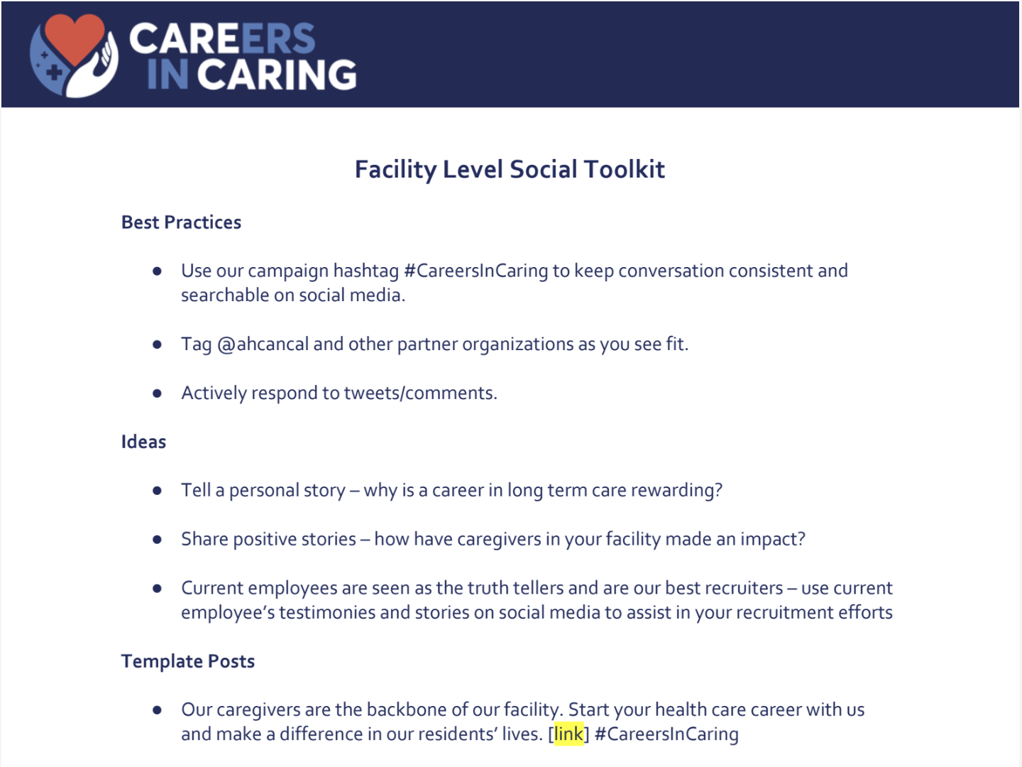 Facility Social Media Toolkit (Editable) Careers in Caring