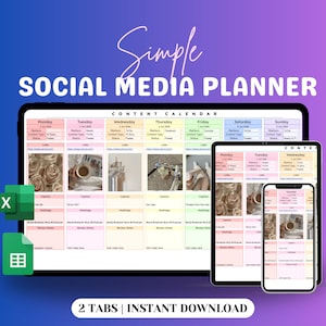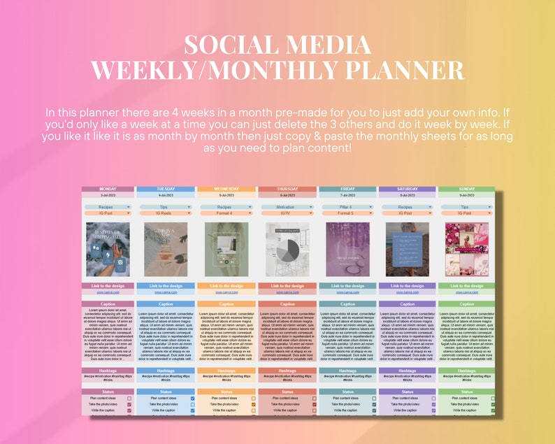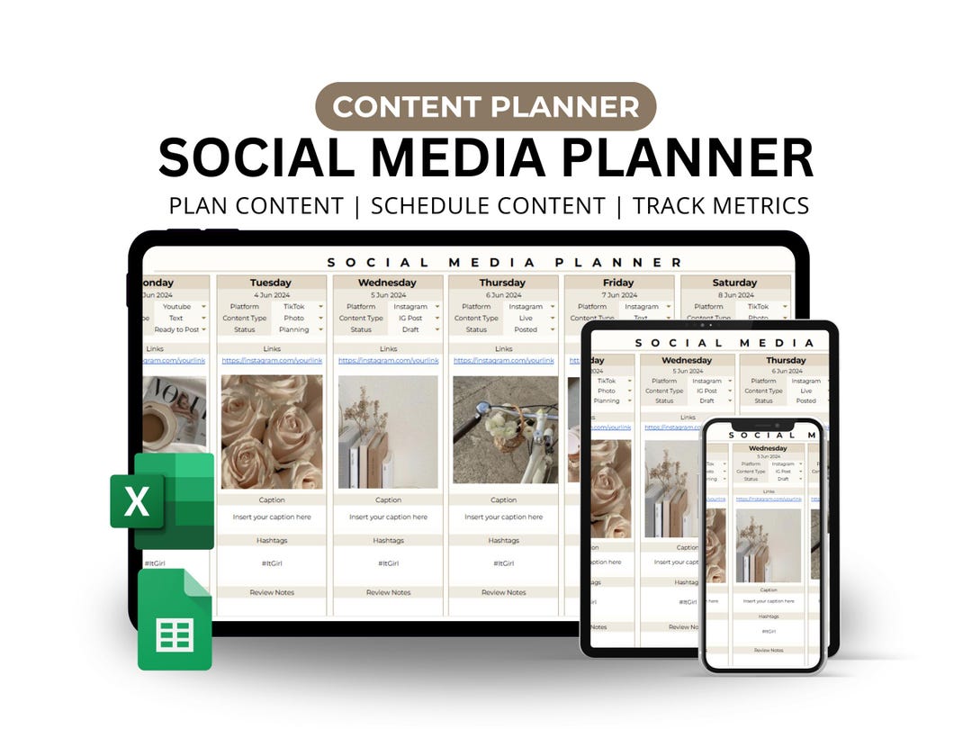 Digital Social Media Planner Excel Spreadsheet Weekly Content Calendar