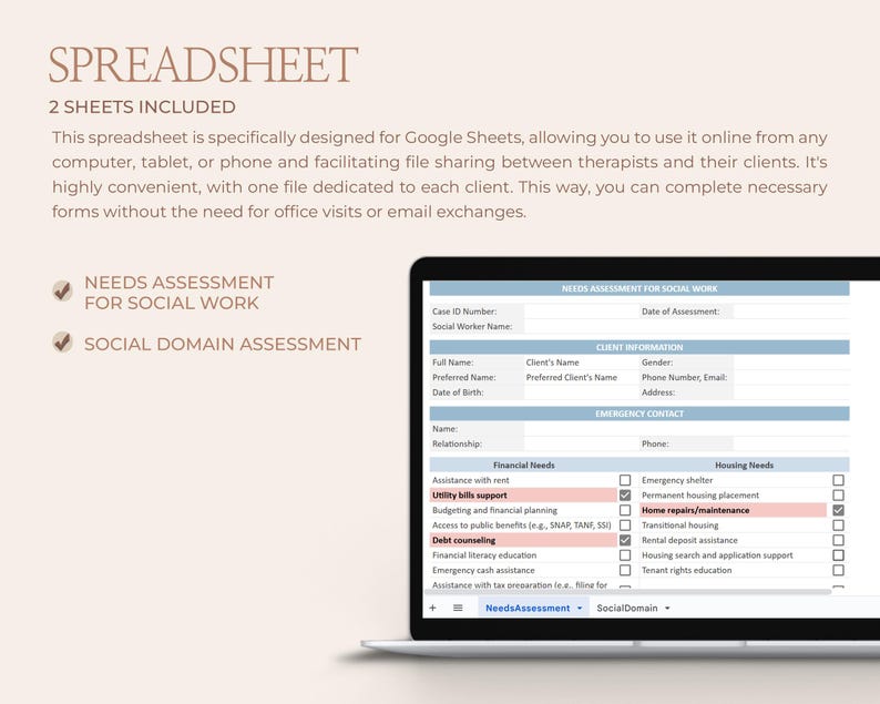 Needs Assessment (SNAP) Forms for Social Workers and Counselors