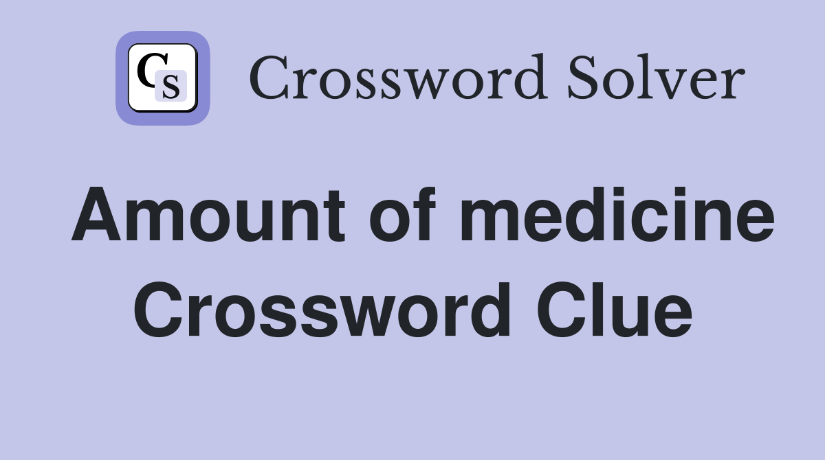 Amount of medicine Crossword Clue Answers Crossword Solver