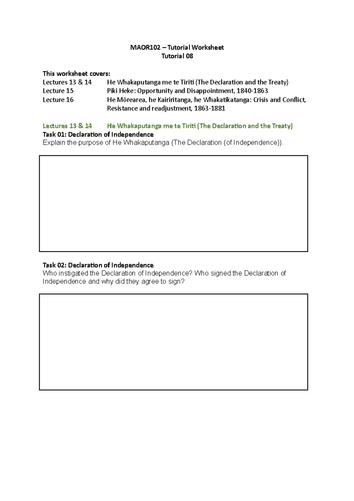 Studyformaor Maori in society template MAOR102 Tutorial Worksheet