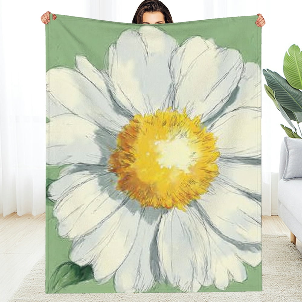Creowell Durable Soft Flannel Blanket White Flower Yellow Center 60