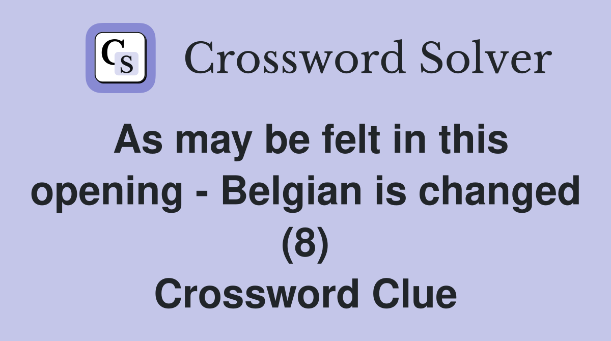 As may be felt in this opening Belgian is changed (8) Crossword