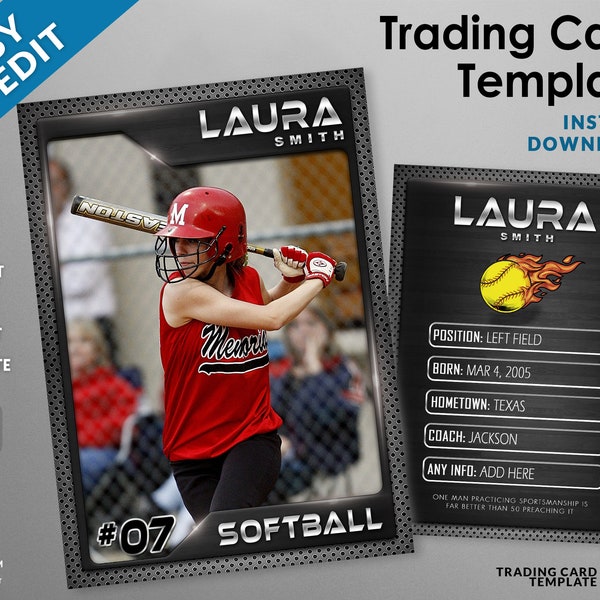 Customizable Softball Card Template Editable Sports Card Design