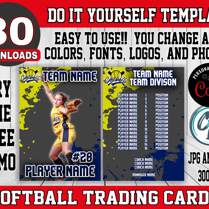 Softball Card Template DIY Golden Sport Cards Printable Etsy