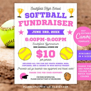 Softball Fundraiser Flyer Template Personalize on Canva Editable