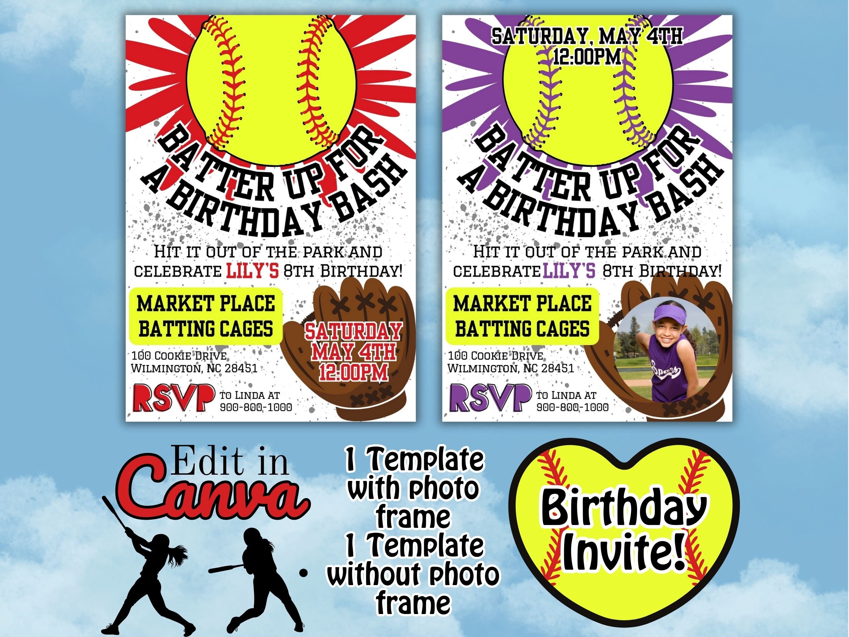 Editable Softball Invitation Softball Birthday Invitation Softball