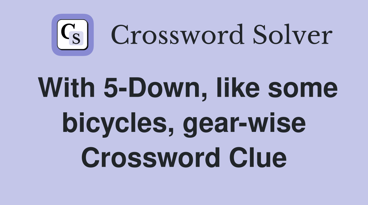 With 5 Down like some bicycles gear wise Crossword Clue Answers