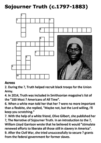 Sojourner Truth Crossword Teaching Resources