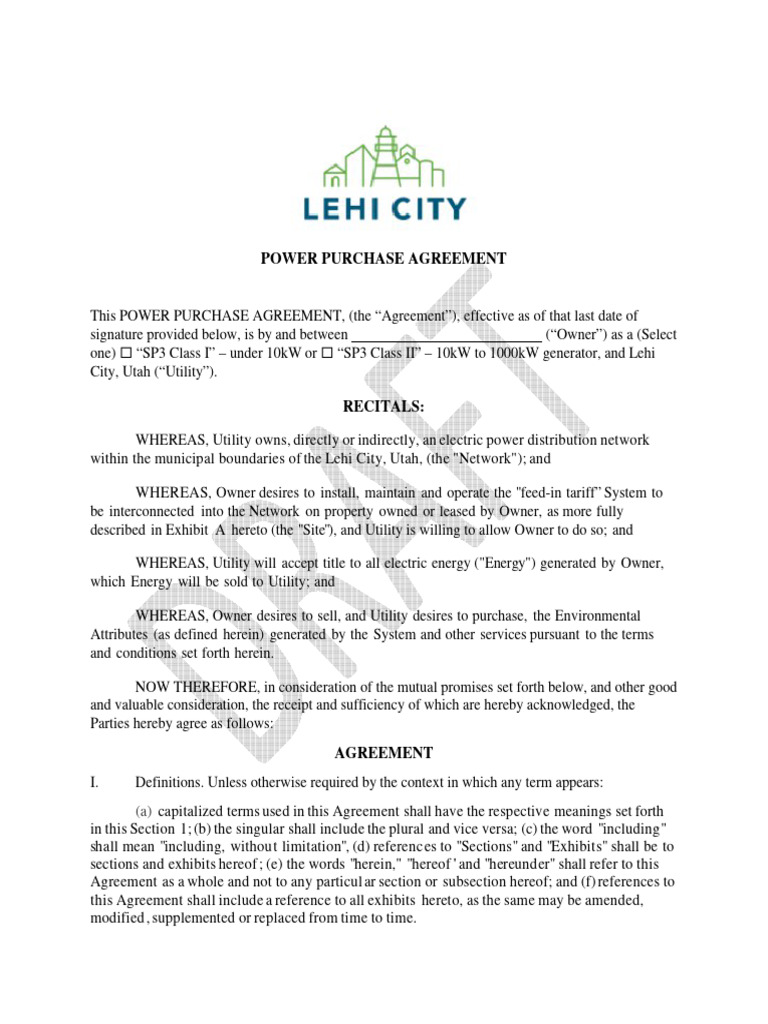 Solar Power Purchase Agreement PDF Template PDF Solar Power