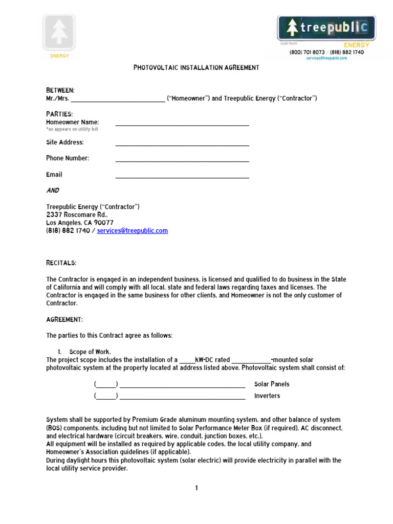 Solar Installation Contract Template