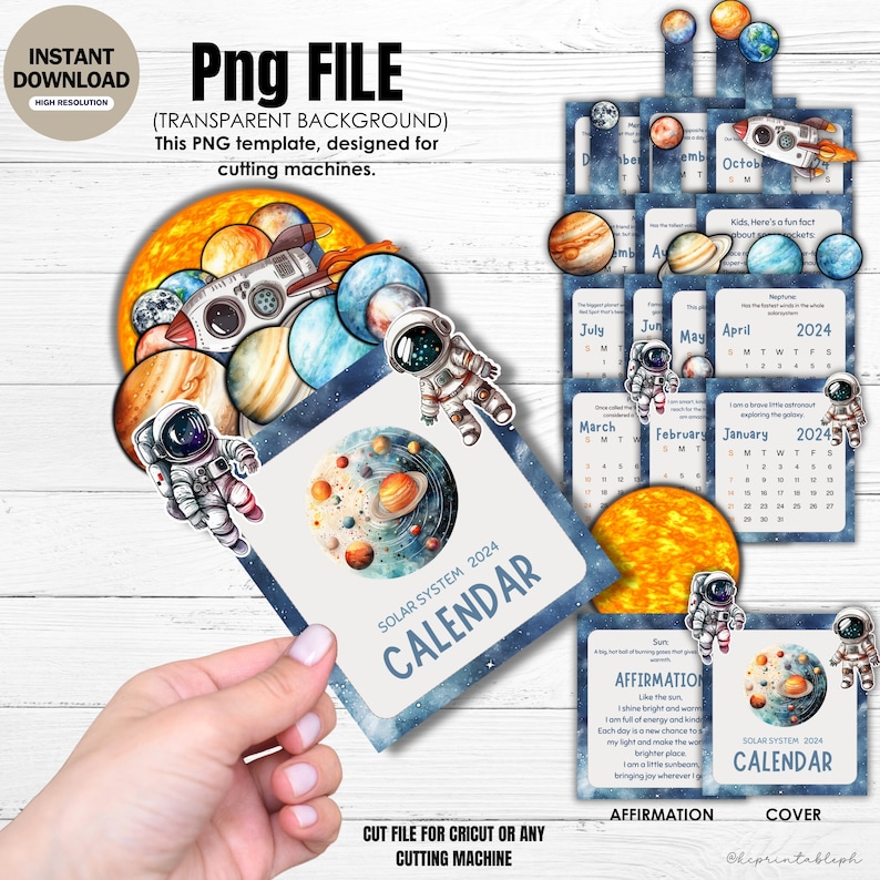 2024 Solar System Calendar Pdf Option Canva Editable Gift for Kids