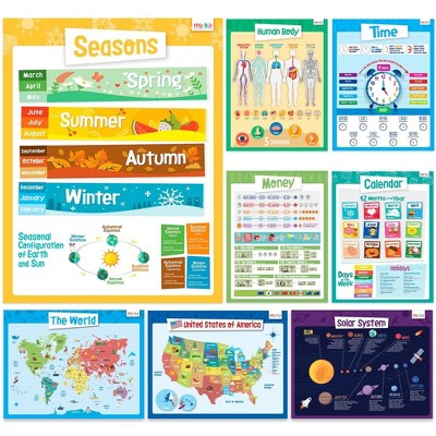 Merka 8 Pack Educational Posters For Toddlers World Map Human Body