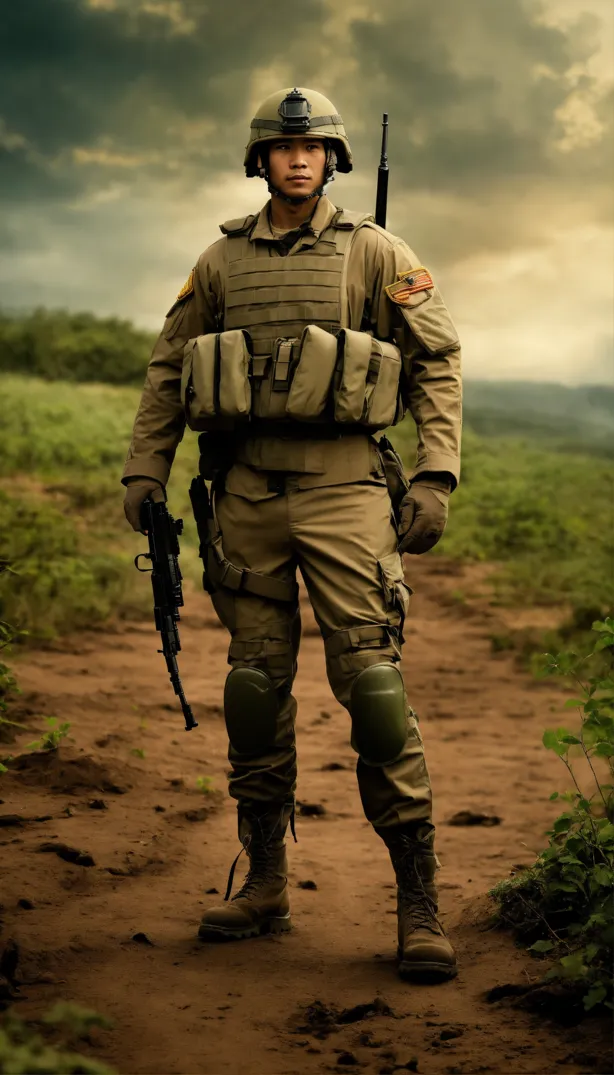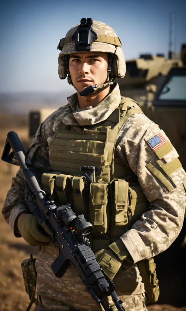 Premium AI Image A well equipped army soldier holding a gun in battle