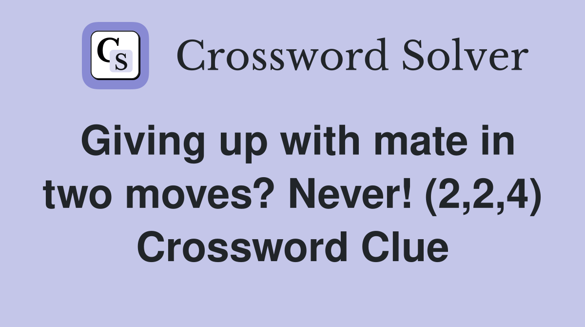 Giving up with mate in two moves? Never (2 2 4) Crossword Clue