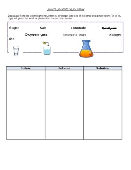 Solutes Solvents and Solutions Interactive Worksheet by Hollie