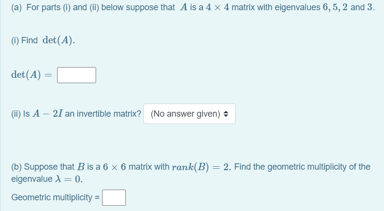 Solved (a) For parts (i) and (ii) below suppose that A is a Chegg com