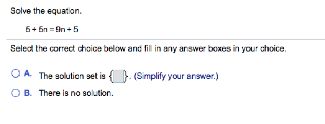 Solved Solve the equation 5 5n = 9n 5 Select the correct Chegg com