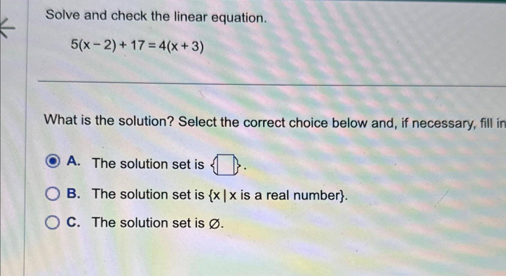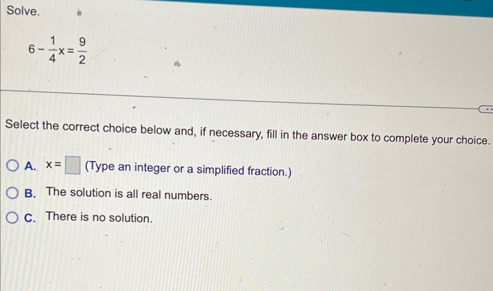 Solved Solve 6 14x=92Select the correct choice below and if Chegg com