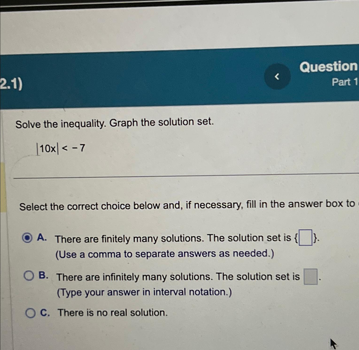 Solved 2 1)QuestionPart 1Solve the inequality Graph the Chegg com