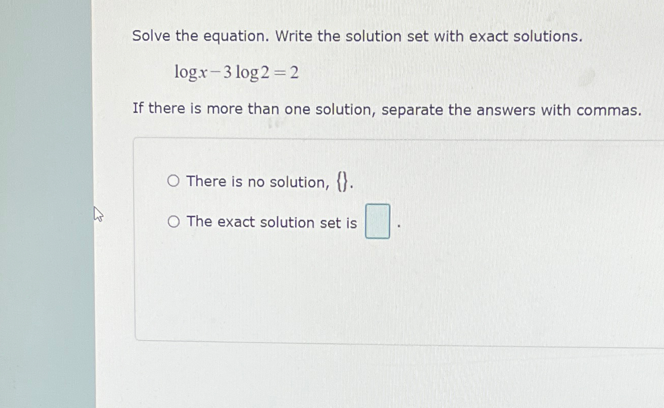 Solved Solve the following logarithmic equation log5x=3Solve Chegg com
