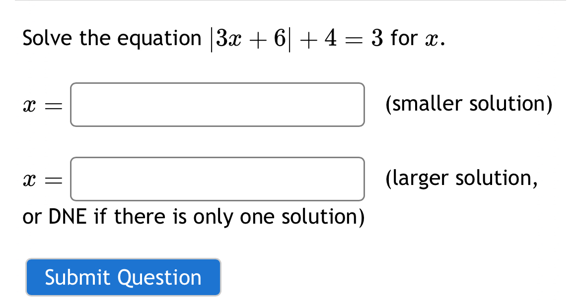 Solved Solve the equation 3x 6 4=3 for x x=(smaller Chegg com