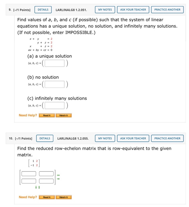 Solved 9 ( /1 Points) DETAILS LARLINALG8 1 2 051 MY NOTES Chegg com
